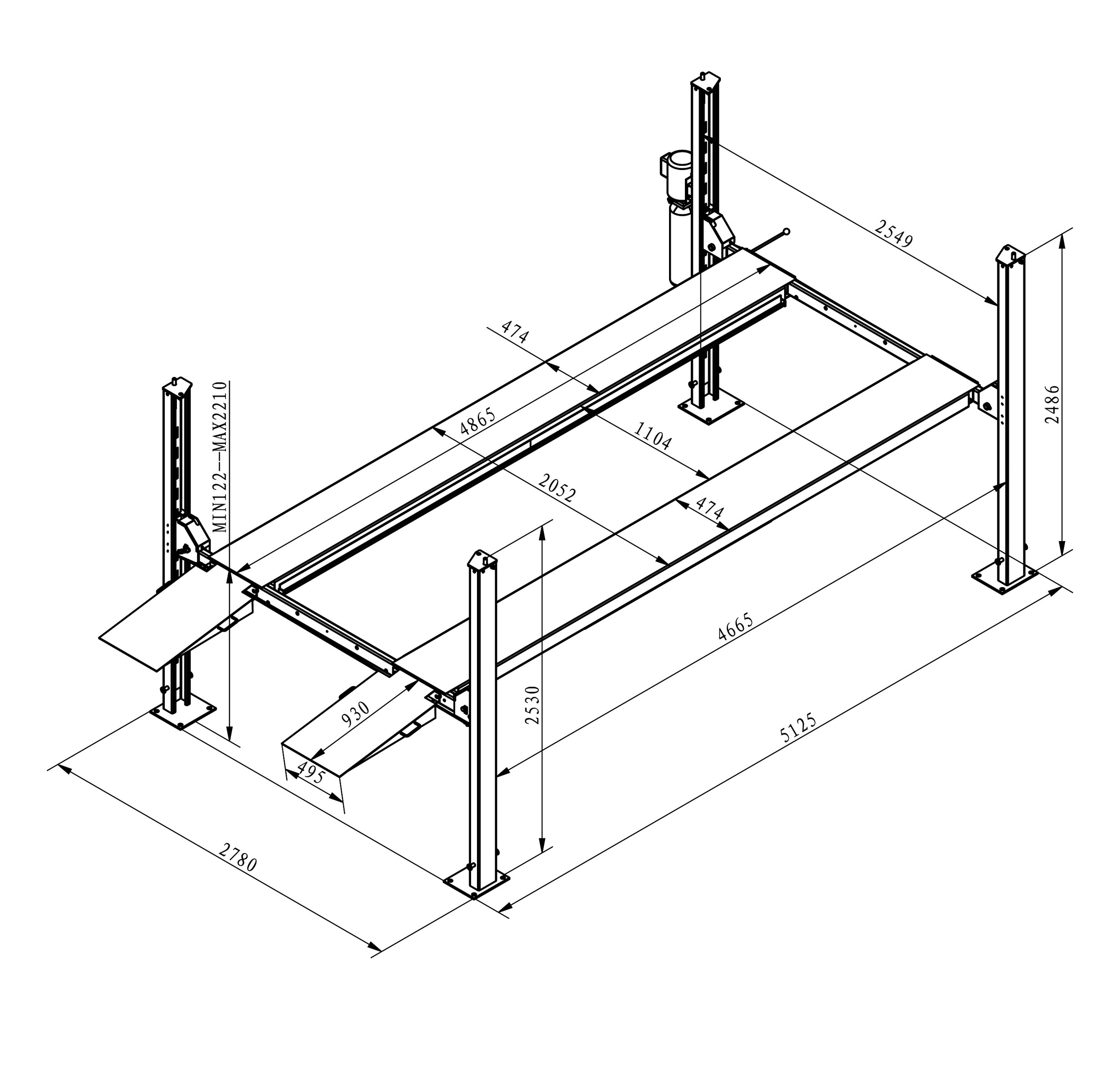 ● Slave runway adjustable to cater for various wheel base vehicles;