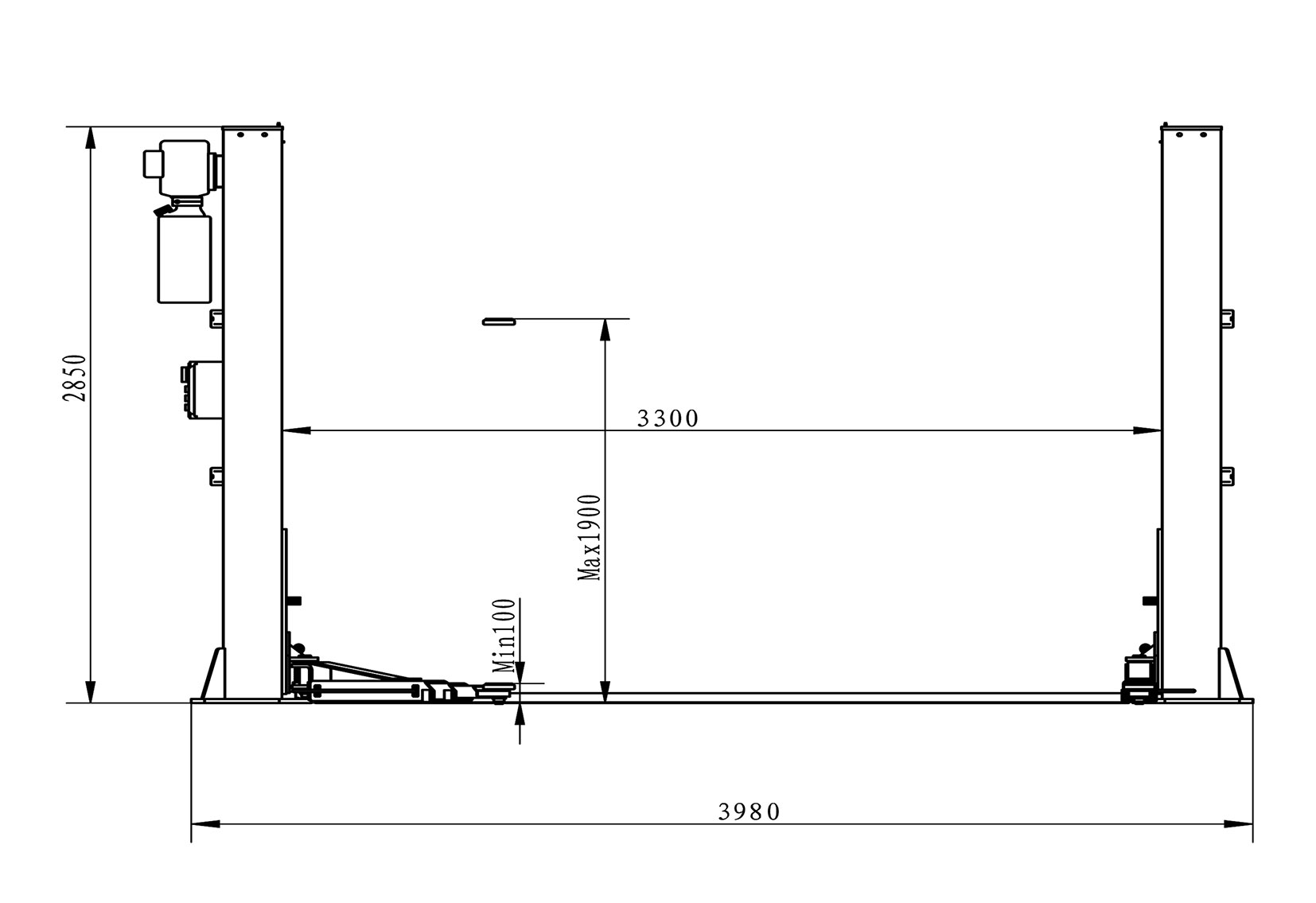 ● Floor plate two post lift;
